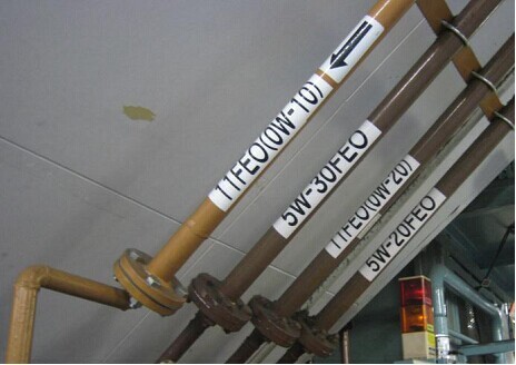 集中供油站共分5 种管路分别为:补液管(送油槽车到补液泵),抽油管(储罐到泵),输送管(泵到线边加注机),排污管(储罐到排污井),呼吸管(储罐与大气相通,带阻燃接头)。管路采用无缝碳钢管。