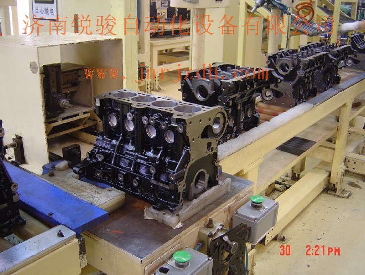 1,工件(发动机缸体)从生产线前一个工序传输过来,
